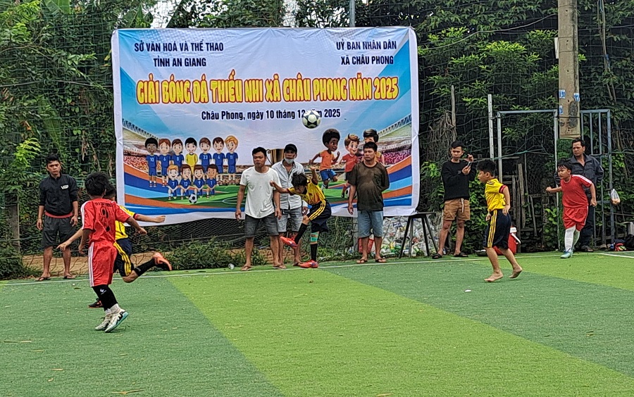 UBND xã Châu Phong vừa tổ chức khai mạc giải bóng đá thiếu nhi U11 năm 2025, thực hiện Chương trình mục tiêu Quốc gia xây dựng nông thôn mới lĩnh vực Văn hóa và Thể thao năm 2025.