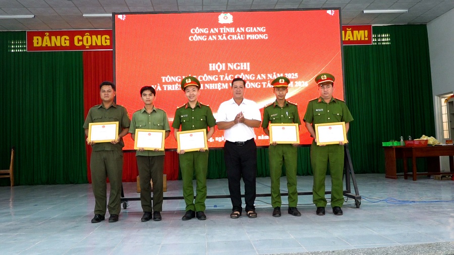 Dịp này, Công An tỉnh An Giang và UBND xã Châu Phong tặng giấy khen cho các tập thể và cá nhân có thành tích xuất sắc trong phong trào thi đua “ Vì an ninh tổ quốc” năm 2025 và công tác phòng chống tội phạm trên địa bàn xã.